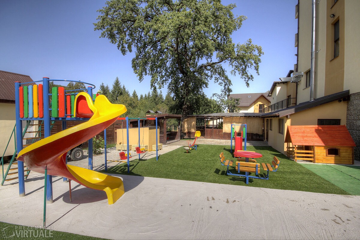 În plus, gurmanzi cum suntem, nu facem niciodată rabat de la calitate atunci când vine vorba de mâncare, iar bucătarii de aici oferă senzațio memorabile papilelor noastre gustative, prin împletirea cu rafinament a tradiției cu arta culinară modernă. Chiar voi, acești falnici străjeri ai timpului, trecuți prin secole de istorie, ați asistat tăcuți la atâtea pregătiri de meniuri de nunți sau evenimente speciale, de tipul unui team-building. Aici, o parte dintre preparate sunt făcute în casă, din ingrediente naturale și specifice zonei – un aspect foarte important care a atârnat greu în alegerea acestui loc pentru petrecerea timpului liber. Că tot veni vorba – vă stă bine așa, semeți, lângă întinderea verde a terenului de sport. Peisajul montan este completat de mascotele vii ale pensiunii – doi ponei drăguți pe care cei mici pot învăța să călărească, oferindu-le copiilor momente și amintiri unice.